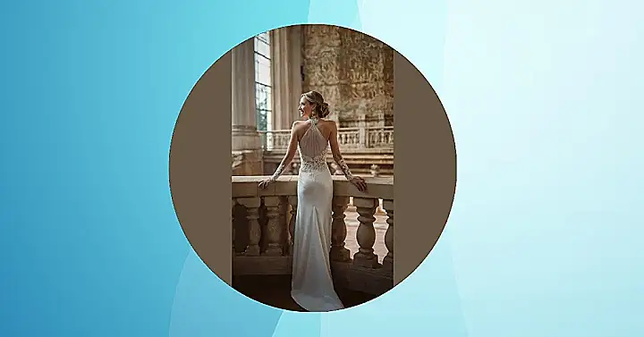 Seriously, this dress is goals. You’ve got that chic halter neckline that’s super trendy, and the way the fabric flows down to a gorgeous mermaid-style tail is amazing! Think less “wedding cake” and more “modern masterpiece.” It’s perfect for a bride who wants to feel confident, beautiful, and ready to party. It’s simple yet stylish – the ultimate combination for a wedding dress, right? Forget about uncomfortable gowns; this dress is all about comfort and style combined.