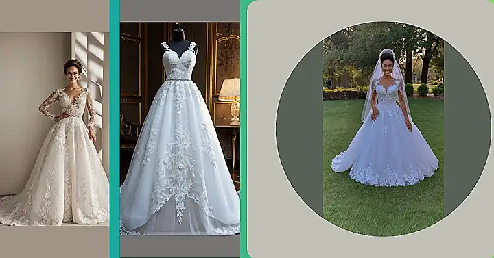 Check out this dress – it’s seriously like a fairytale exploded! It has got all the things, you know, the gorgeous lace, the perfect puffy skirt, and that overall “wow” factor. It’s one of those best wedding dresses that makes you want to twirl around in a field of flowers while belting out your favorite song. Just promise us you won’t trip!