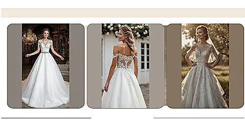 Check out this classic bridal dress! It’s got all the fancy bits: the swooshy skirt that looks like a cloud you could get lost in, and that delicate lace on the sleeves and top like something straight out of a royal wedding. This style is totally classic for a reason – it just screams elegance and makes you feel like a total superstar, proving that some looks just never go out of style no matter where you are.