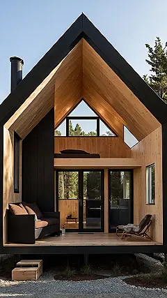 Peeking through those huge windows, you see right into the trees and sky, like being inside a giant, comfy nature box. Forget boring walls; this micro house feels like living *in* the landscape, especially with that cool path leading up. When the lights are on inside at night, it looks like a warm, glowing jewel box sitting in the grass – perfect for chilling out and watching the stars (or maybe just scrolling on your phone in a really cool setting).