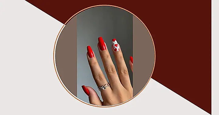 Seriously though, that perfect blend of classic red polish with the adorable heart accents is pure Valentine’s Day magic. It’s the perfect way to celebrate the holiday, whether you have a special someone or are just feeling the love for yourself. Plus, they’re easy to admire – just hold up your hands and let the compliments roll in!