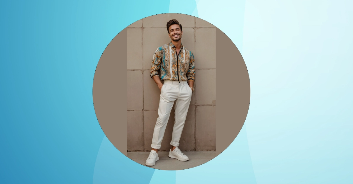 Seriously, who needs a plain white shirt when you can rock this much personality? The colors are popping, the design is unique, and the whole look just screams “summer fun.” This “mens Bold Print Shirt outfit” is proof that you can be both fashionable and relaxed. It’s the kind of outfit that’ll make you feel confident and ready to take on the world, whether you’re showing off your killer dance moves or just chilling with a good book. Imagine yourself wearing this – instant upgrade to your style game!