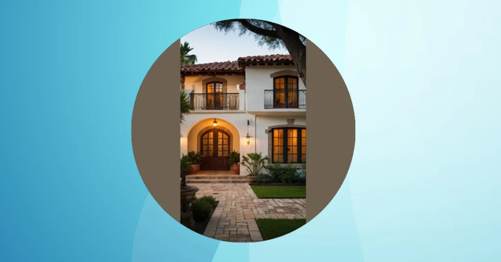 And check out those beautiful arched doorways and windows! They give the whole place a super elegant feel, like something straight out of a fairytale – but a fairytale where everyone has amazing taste in home décor. Seriously, that tiled pathway practically invites you to stroll in and make yourself comfortable. It’s like the house is saying, “Come on in, friend! Let’s have some fun!”