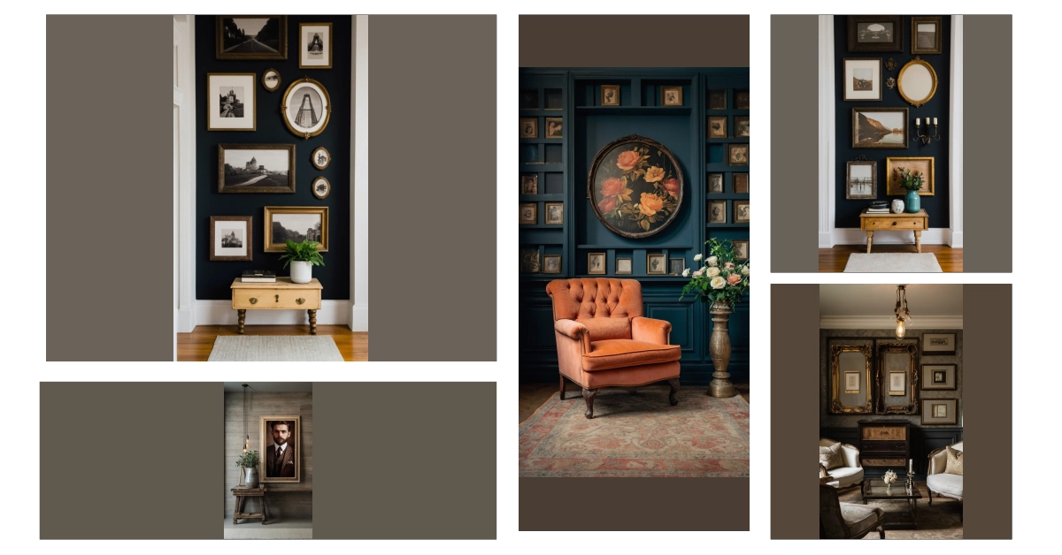 This corner is like stepping into a time capsule! Imagine all the stories hidden behind those vintage frames. It’s like the wall itself is whispering secrets from the past—maybe about fancy parties, awkward family photos, or even a mischievous pet causing chaos. That comfy chair looks perfect for curling up with a good book and letting your imagination run wild with all the potential tales those old pictures could tell. It’s a totally awesome vintage frame gallery wall, a perfect blend of history and chill vibes.