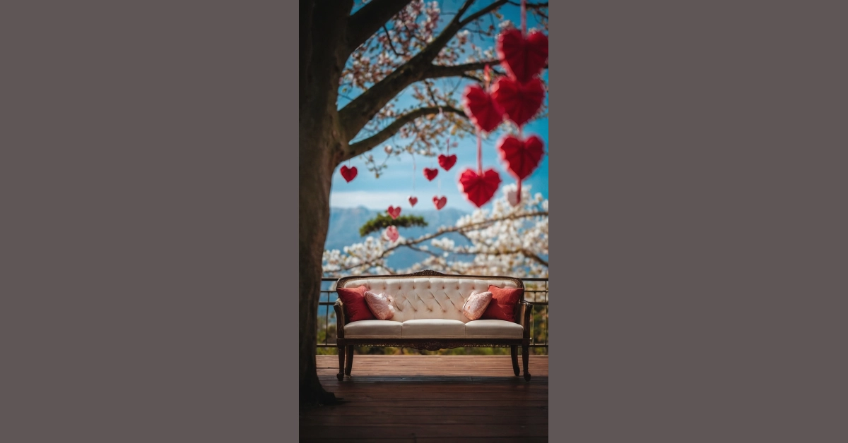 Imagine this: you’re snuggled on a fancy couch, surrounded by a dreamy cherry blossom tree. Hanging from its branches are tons of cute, red paper hearts – it’s like a real-life Valentine’s Day card come to life! This picture is totally wallpaper-worthy, especially if you’re looking for something super romantic for your iPhone background. It’s the perfect blend of sweet and sophisticated, ready to give your phone a seriously stylish Valentine’s Day makeover!