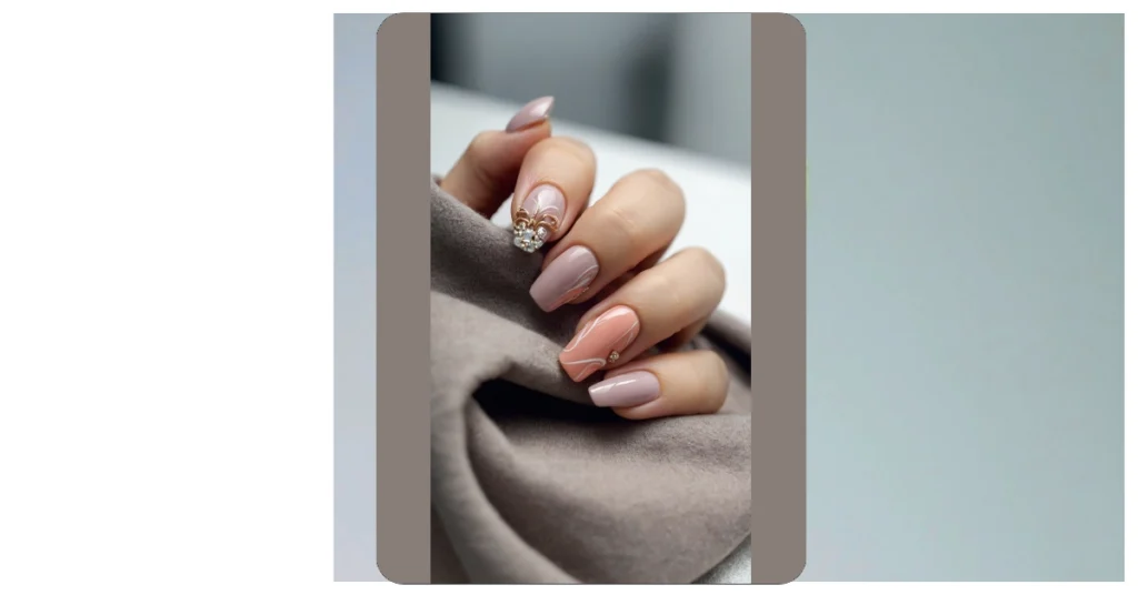 These nails are seriously dreamy! Imagine cozying up by a fireplace with a mug of hot cocoa, and BAM! Your nails are like a little winter wonderland on your fingertips. They’re soft and pretty, just like a freshly fallen snow, but with a touch of sparkle that’s totally unexpected – like finding a hidden treasure in a snowdrift! The peachy-pink and nude colors are perfect for adding a subtle pop of color to those gloomy winter days.