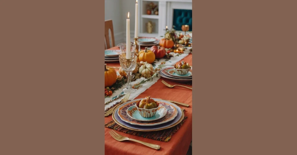 And just look at those plates! They’re so fancy, you’d think you were at a royal feast. With all these beautiful details, you know the food is going to taste even better. This table setting is all about warm, cozy vibes and a touch of elegance. We can’t wait to gather around a table like this with our favorite people and celebrate all things autumn!