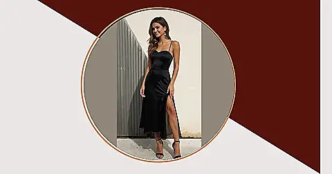 That little black dress? It’s not just a dress, it’s a secret weapon! Imagine: you’re all ready for your date night, feeling confident and fabulous in this sleek, stylish number. This isn’t your grandma’s black dress – it’s modern, chic, and totally ready to turn heads. The satin fabric practically screams “sophistication,” and that leg slit? Just enough sass to keep things interesting. Get ready to impress, because this dress is seriously going places (and so are you!).