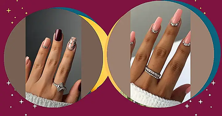 Forget about boring nails this season! This look takes regular pink to the next level. With the sparkly details and the pearl accents, it’s like your nails are wearing jewelry! Plus, all the rings? Total nail goals. This manicure definitely understands the assignment.