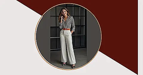 This outfit is proof that office wear doesn’t have to be boring. You could swap the mauve shirt for a blue, green, or even floral one; it would still look super put-together! Pair with some cute flats if you want to be comfy, and you’re ready for anything, from acing that important meeting to grabbing coffee with your work bestie. Who says you can’t be stylish *and* crush your career goals? Not us!