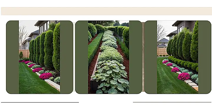 Have you ever stared out at your neighbor’s yard and thought, “Wow, they’ve got it all figured out”? Well, this picture is like a level-up guide for your property line! See those tall, perfectly shaped trees standing shoulder-to-shoulder? They’re not just pretty; they’re basically a green wall that says, “This is my space, and it’s going to look amazing.” It’s like building a privacy fence, but way more stylish and eco-friendly.