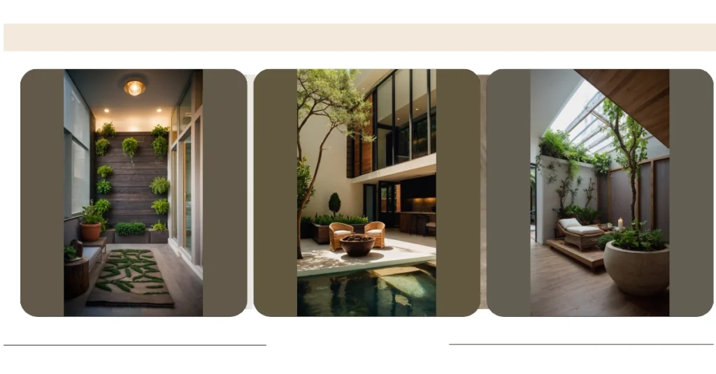 Imagine having your own personal slice of paradise right inside your house! This picture shows a stunning example of a house interior garden – it’s like stepping into a secret garden without even leaving your home. There’s lush green grass, a peaceful little fountain that looks perfect for sipping lemonade by, and even some pretty pink flowers adding a splash of colour. It’s basically a mini-vacation, every day!