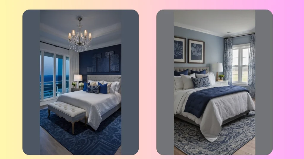Now, when you think about color schemes, don’t just settle for anything boring. Combine that navy blue backdrop with timeless combinations like gray and white, and trust me—you’ll have an effortless flow. Imagine curling up in your navy blue bedding while surrounded by soft gray cushions and a splash of light pink decor. How could anyone resist such a welcoming vibe?