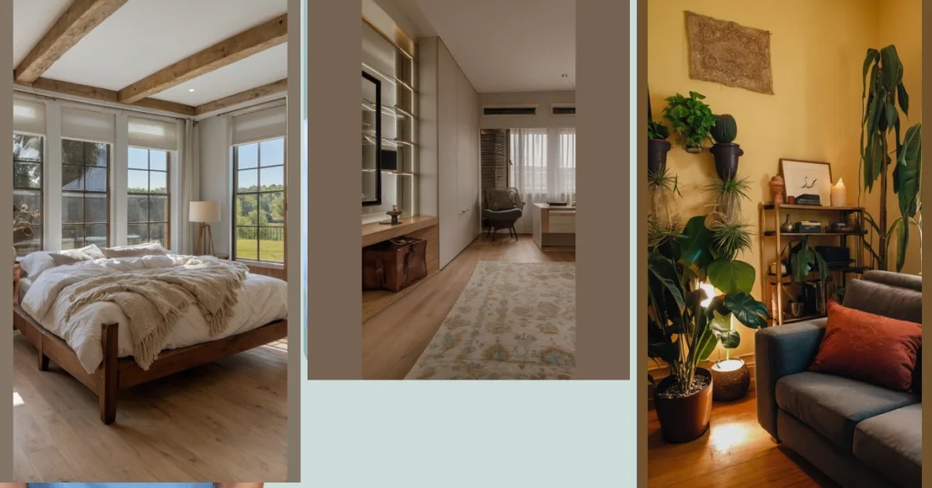This bedroom is giving us major cozy vibes! Just look at that fluffy bedspread, the comfy pillows, and the soft rug. It’s like stepping into a cloud! The warm lighting from the lamp makes it even more inviting, and the little touches, like the plant and the book, add a personal touch. This room screams “relax” and “stay awhile.” It’s the perfect space to curl up with a good book or movie and escape from the world.