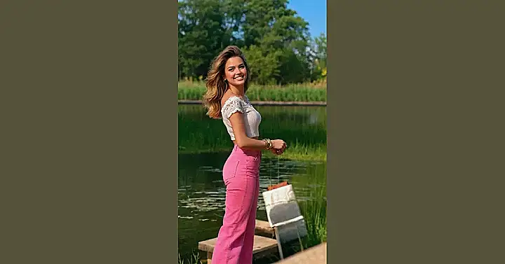 Those pink jeans are seriously screaming “style icon”! Rocking pink denim is a bold move, and it looks like she’s totally pulling it off. Think of them as a softer, more fun version of your regular blues. Pair it with a cool top like that sweater, add a killer bag, and suddenly you’re ready to rule the school (or just grab coffee with friends)!