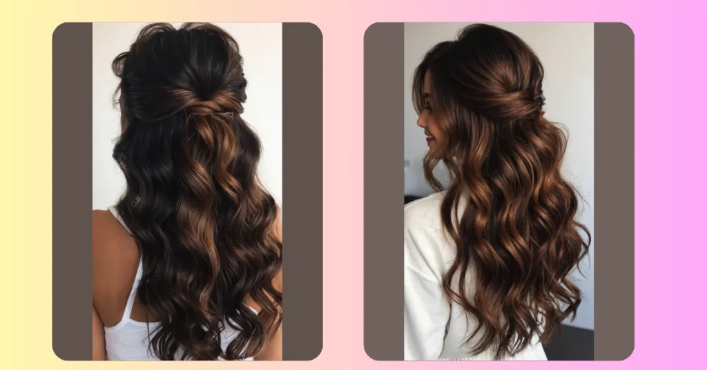 It’s basically the perfect hairstyle for those days when you want to look cute but also feel comfortable. Like, let’s be honest, who has time to mess around with complicated braids and buns when you have places to be and people to see? This simple half-up style is a great way to show off your long hair without having to worry about it getting in your face all the time. And hey, maybe you can even convince your friends to try it too!
