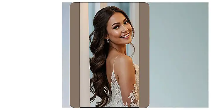 And the waves? Gorgeous, right? They frame her face so beautifully, it’s like they were made for each other. This hairstyle is so versatile, you could totally picture this bride on a beach, in a garden, or even at a super fancy ballroom – it’ll look stunning no matter what. Plus, let’s be honest, it’s low-maintenance chic. No crazy updos that’ll fall apart after a few dances, just picture-perfect waves. You’ll be saying “I do” to this look in a heartbeat.