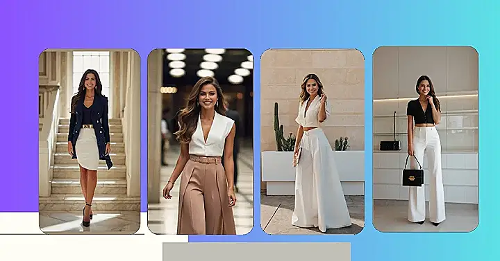 This outfit is like a total upgrade from your grandma’s pearls! Imagine: You’re strolling through a fancy garden party, maybe even in the French Riviera, looking effortlessly stylish in this gorgeous two-piece. It’s all crisp white, sleek lines, and that amazing skirt that flows like a dream. Forget stuffy old-money styles—this look is fresh, modern, and totally ready to take on the world (or at least, a really impressive Instagram feed).