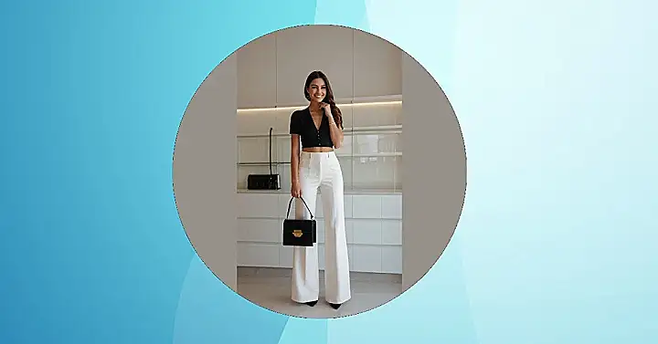 Seriously though, check out those pants! They’re like the grown-up version of your favorite comfy jeans, just way more sophisticated. The black cropped top adds a modern twist, keeping the look from feeling too “old lady” (sorry, grandma!). And that bag? That’s the cherry on top of this super stylish sundae. This whole look screams effortless cool – the kind of cool that makes you wish you could magically inherit a million bucks, just so you could wear more amazing outfits like this.