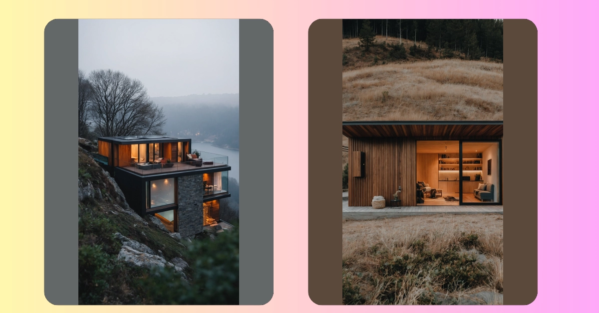Check out this cool house! It looks like it landed straight out of a movie, perched on that hillside overlooking the water. It’s kind of a ‘micro house,’ which basically means it’s not exactly gigantic, maybe just big enough that you can’t actually get lost inside (unlike your school). Think less endless hallways and more “oops, that’s the kitchen right next to the couch.” It’s probably designed super smart so you can fit all your essentials, like snacks and maybe one actual textbook.