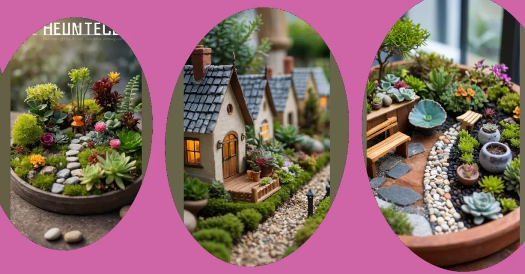 Check out this adorable miniature garden design! It’s like a whole little village built for tiny people (or maybe fairies!). Imagine living in one of those cute houses with a little wooden porch, surrounded by teeny succulents and mossy paths. It’s so detailed, you almost expect to see miniature people watering their miniature flowers!