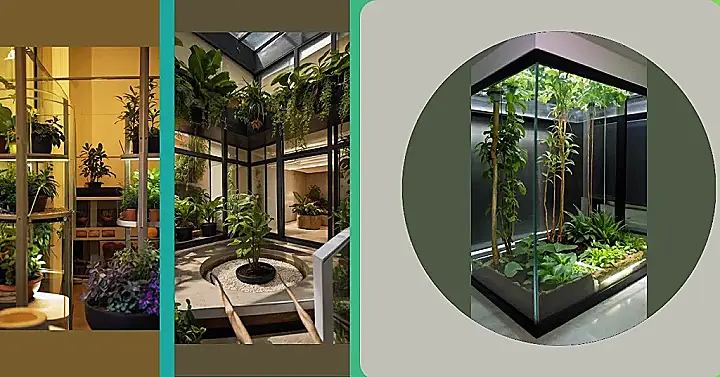 Imagine being a plant stuck inside a glass case, unable to feel the warm sun on your leaves. That’s kinda what it’s like in this indoor garden, but hey, at least these plants have a pretty cool view! It’s like a tiny, green world in a glass box, and the best part? It’s totally inside, so you can admire these plants without even stepping outside!