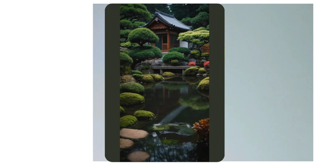 This picture looks like a super peaceful Japanese garden! You can almost hear the quiet water trickling over the rocks. It’s like someone took a giant paintbrush and said, “Let’s make this place look super relaxing!” There’s a little stream flowing through the garden and some perfectly placed stepping stones that would be fun to walk on, but you’d have to be careful not to slip!