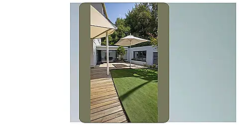 This backyard is seriously goals! Imagine chilling under those umbrellas with your friends, sipping lemonade (or maybe something a little stronger when you’re older!), while soaking up the sun. That lush green grass is begging for a game of frisbee or a good old-fashioned picnic. It’s the perfect spot for a summer party, or just a quiet afternoon reading a book. The wooden deck adds a touch of elegance, or maybe it’s just the perfect spot for your next Instagram photoshoot!