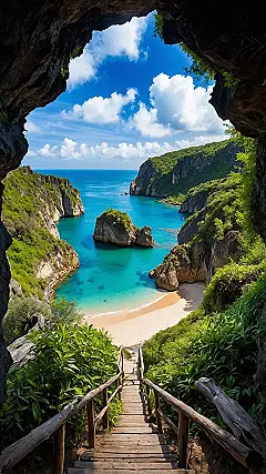 And how cool are those rustic wooden stairs leading down? It’s practically an invitation to ditch your backpack for a beach bag and make your grand entrance onto that perfect stretch of sand. Imagine splashing in that amazing water or just flopping down and doing absolutely nothing but listening to the waves. This picture just proves that the coolest adventures are often a little bit hidden, and totally worth seeking out. Time to start planning your escape, even if it’s just a daydream for now!