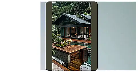 Imagine this: you’re chilling by your private pool, sipping something fruity, and the only thing louder than the gentle splash of water is the laughter of your friends. This isn’t some far-off fantasy; it’s your new tropical luxury house villa! The picture shows a super-stylish house, all dark wood and sleek glass, nestled right into a lush jungle. Seriously, it looks like a scene from a movie – except you’re the star! The amazing pool practically begs you to dive in for a refreshing swim after a day of exploring the rainforest.