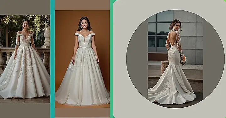 For our boho brides, we haven’t forgotten you! Picture a flowing, ethereal gown in soft satin or silk, perfect for a relaxed outdoor ceremony. Throw in a floral crown, and you’ll be the ultimate woodland queen. Speaking of styles, let’s not ignore the power of sleeves! Long or short, sleeves (or the lack thereof) can transform your entire wedding look from demure to daring.