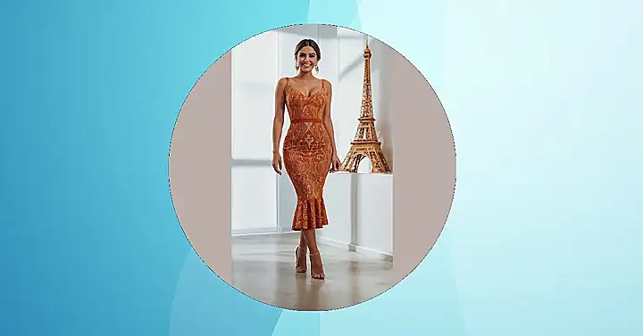 This girl is totally rocking the Homecoming look! She’s wearing an amazing dress that makes her feel like a princess, and she’s got that confident smile that shows she’s ready to have a blast. The dress is totally chic, with that beautiful pattern and the flowy skirt. You know it’s going to make her stand out from the crowd. She’s even got a little Eiffel Tower in the background, which adds a touch of Parisian flair. Maybe she’s hoping to meet her own Prince Charming at the dance!