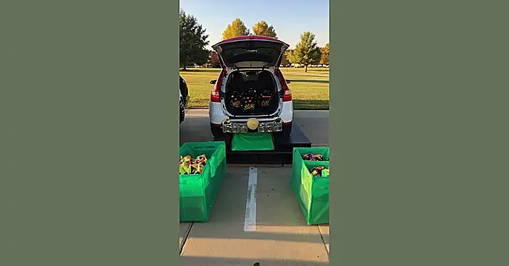 The cool thing about the picture is that someone has made these super cute little “houses” for their candy. Think of it as a way to show off your creativity while also giving the trick-or-treaters a fun surprise. You could make something like this, or maybe a spooky spiderweb, or even a cute little ghost! The possibilities are endless, just like the fun of Trunk or Treat!