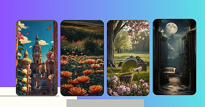 This image is like a scene straight out of a fairytale! It’s got all the ingredients for an epic adventure: a giant, glowing moon, a mysterious doorway hidden by vines, and a comfy-looking couch for you to rest on while you wait for the magic to begin. Maybe you’re about to meet a prince or princess who lives in a world beyond the door! This image is so dreamy, you’ll want to just curl up and get lost in its magical vibe. It’s the perfect lock screen for anyone who wants their phone to feel like a portal to another world!