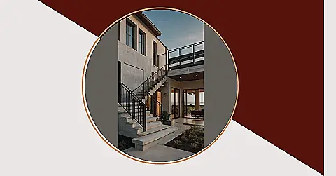 This house is seriously fancy! It’s got all the features you’d expect from a luxury Mediterranean home: sleek lines, stylish windows, and a patio that looks like it’s straight out of a magazine. And let’s not forget the awesome staircase! It’s like a giant, luxurious invitation to explore the rest of this amazing place.
