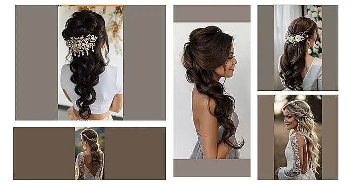 Let’s get the ball rolling with one of the most captivating options—the “Half Up Half Down” hairstyle! If you have long flowing locks that you’d like to keep stylishly in check, this hairdo is your ultimate best friend. It seamlessly marries sophistication with an effortless vibe. You can let those luscious locks flow free while keeping the front elegant and cohesive. Just imagine the photos—as show-stopping as your wedding day itself!