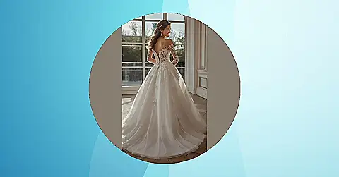Seriously though, this dress is so elegant and sophisticated, you’d be stunning in it. It’s the kind of dress that would make your wedding photos look like they belong in a magazine. The off-the-shoulder sleeves and the flowing tulle skirt are just perfect. Plus, can we talk about that beautiful back detail? It’s the perfect mix of classic and modern, making it a truly unforgettable American wedding dress.