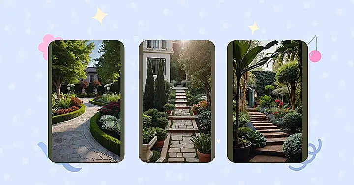 This garden is like something out of a fairytale! It’s got everything a classy garden needs: a beautiful stone path that winds through the lush greenery, bright flowers adding pops of color, and a peaceful little fountain that adds the perfect touch of serenity. It’s the kind of place you’d imagine royalty taking a stroll through, all fancy and stuff.
