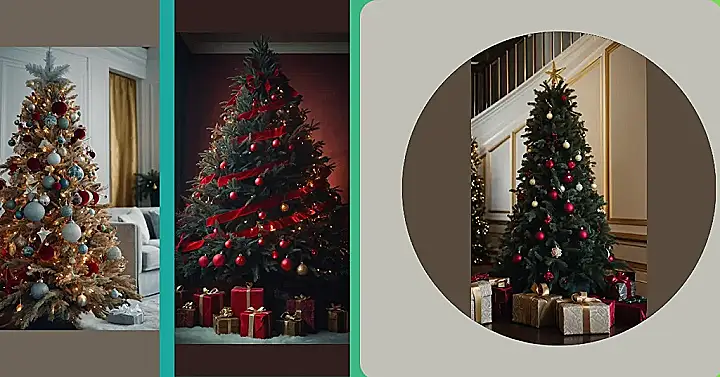 This Christmas tree is decked out in style! It’s got more ornaments than a jewelry store! Shiny gold and red baubles dangle from its branches, making it look like a fancy Christmas tree fit for a queen. The tree looks like it’s ready to host a festive party, with all those sparkling decorations. It’s almost enough to make you want to wear your best outfit and dance under its branches!