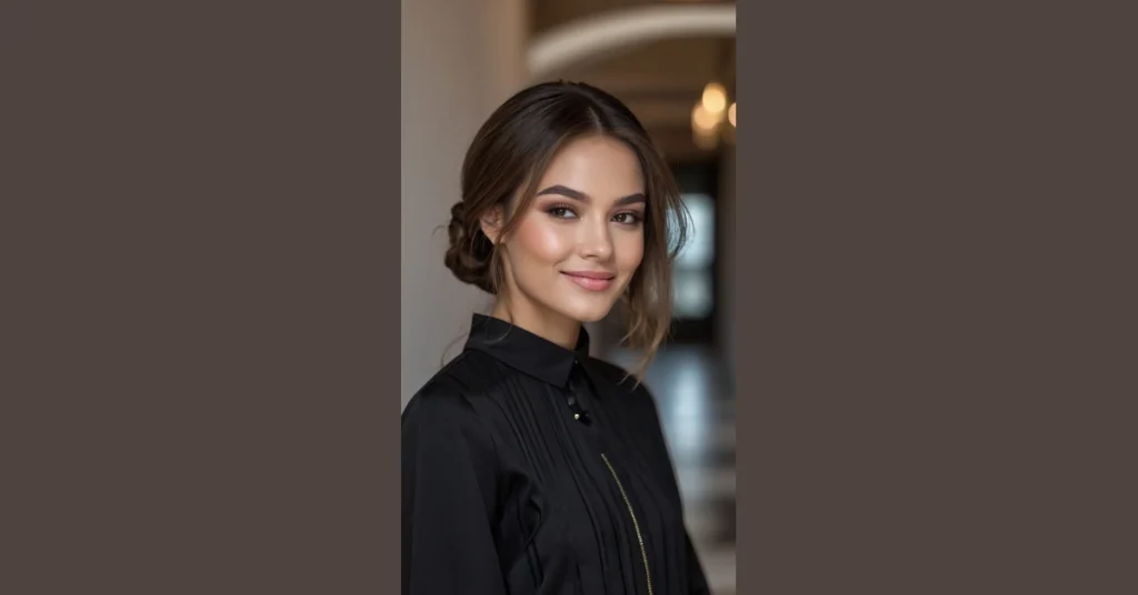 Seriously, this isn’t your grandma’s hair bun. It’s way more chic. You could totally see your coolest aunt rocking this at a fancy brunch. And honestly, it’s way easier to pull off than it looks. Plus, that hair clip? Absolute game-changer! So next time you need a fancy ‘do, remember this photo and show everyone that aunt hairstyles are officially back, but like, in a cool, modern way.