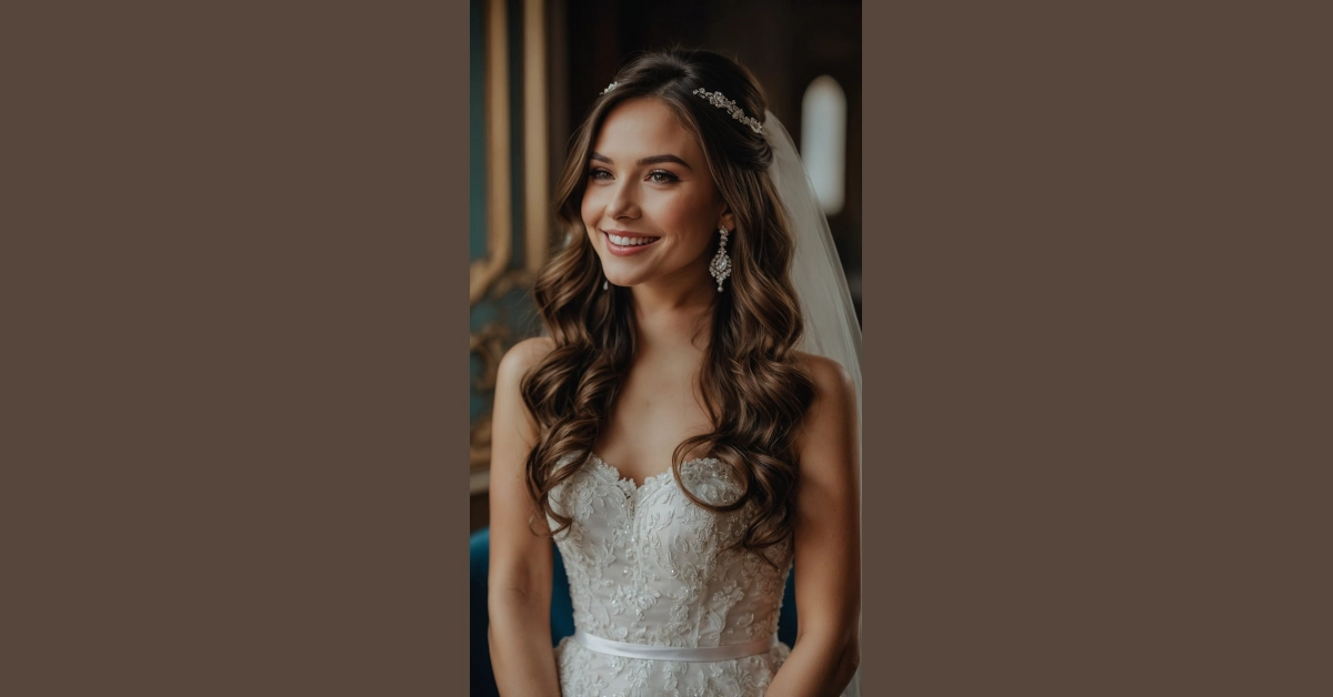 This bride totally nailed the perfect hair for her big day, and honestly, it looks like something straight out of a 2025 wedding magazine! Check out those gorgeous waves cascading down, looking effortlessly chic while the top part is pulled back just enough to keep everything tidy. It’s the kind of style that says, “I’m elegant, but I can still totally crush it on the dance floor later,” which is pretty important when you’re wearing a fancy dress and trying not to trip over anything. Plus, those face-framing bits? Chef’s kiss for those close-up photos!