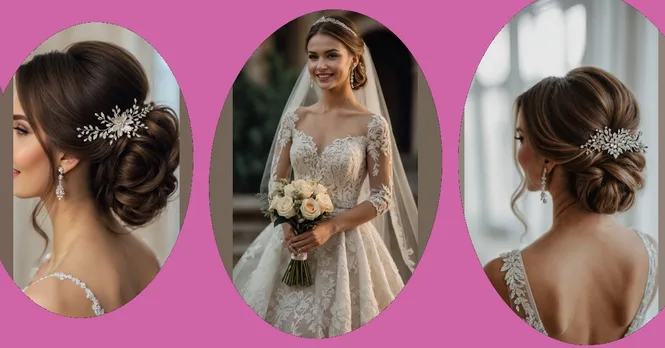 Picking a bridal hairstyle, whether it’s for 2025 or whenever, is all about feeling awesome and maybe a little extra fancy. Styles like this one in the image show how accessories can really make the look pop, turning simple strands into something spectacular. Whether you go for something sleek and simple or a total hair masterpiece like this, the main goal is probably just hoping it stays put until the cake is cut. Let’s hope in 2025 they invent a hairspray that’s stronger than concrete but feels like air!