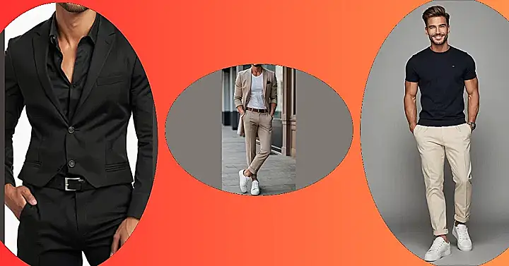 This guy’s outfit is like a cheat code for looking awesome! A simple dark shirt and light-colored pants? It’s surprisingly stylish, kind of like finding a twenty-dollar bill in your old jeans. The clean white sneakers add a relaxed vibe, perfect for hanging out with friends or maybe even impressing your crush. It’s high-end fashion without the high-end fuss – just cool, comfortable, and ready to go!