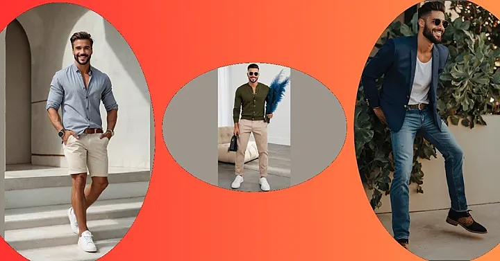 Hey there, fashion-forward friend! Check out this guy rocking a super chill summer look. He’s proving that “mens fashion casual outfits” doesn’t mean sacrificing style for comfort. That crisp white shirt paired with those khaki shorts is seriously stylish – perfect for a casual stroll or a hangout with friends. Forget stuffy suits; this is how you do cool and casual with a smile.