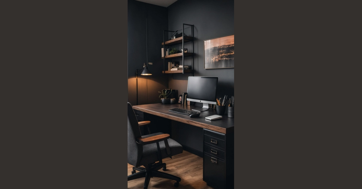 Peep this home office setup! It’s so dark and swanky, you might feel like you need a secret handshake just to sit down. With shelves piled high like a mini-library and some mysterious-looking statues giving you the side-eye, it’s less ‘doing homework’ and more ‘unearthing ancient secrets’ while you scroll endlessly through notes. You could totally imagine yourself as a super-genius inventor or maybe just someone who really, really wants a cool place to avoid folding laundry. This spot definitely makes even the most boring assignment feel a little bit epic.