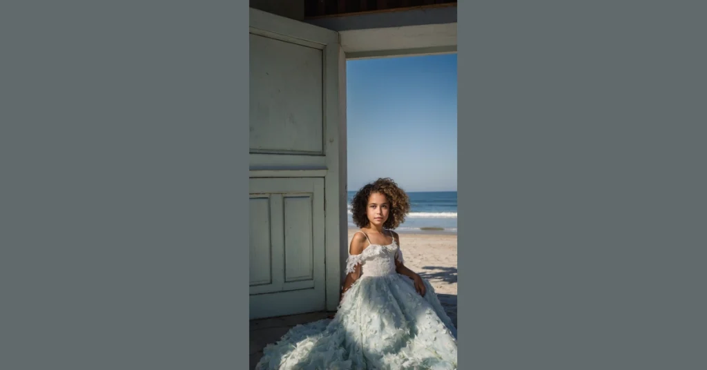Some mornings are just so perfectly calm, you feel like you could conquer the world, or at least the nearest sand dune in style. Who says you can’t wear your fanciest, floofiest dress just to hang out by an old door looking at the ocean? Forget practicality; this is about embracing the chill vibe with maximum sparkle. It’s like, “Yep, it’s a calm morning, time to make it extra fabulous.”