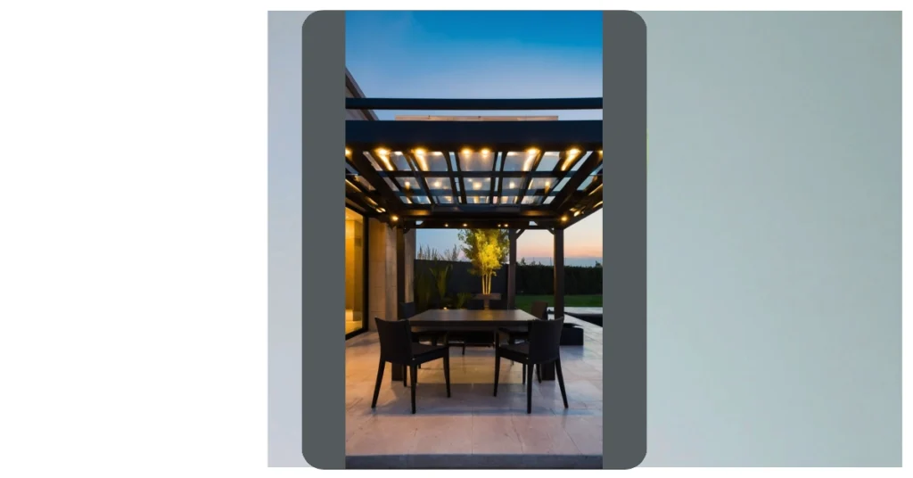 Imagine having this sweet canopy design in your backyard! It’s like having your own fancy outdoor room, perfect for chillin’ with friends or pretending you’re a super important CEO having a power lunch. It even has mood lighting! This is way better than my grandma’s old-school patio umbrella that always threatened to fly away in the wind.