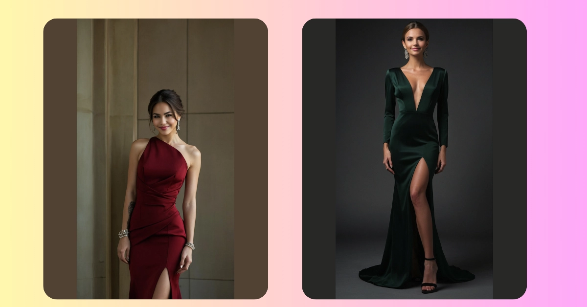 Seriously, though, imagine the compliments you’d get! It’s the perfect blend of classic and modern – not too flashy, but definitely head-turning. That sleek, flowing design? It’s like something out of a dream. Pair it with some sparkly earrings and a cute clutch (just like in the picture!), and you’re ready to conquer any party!