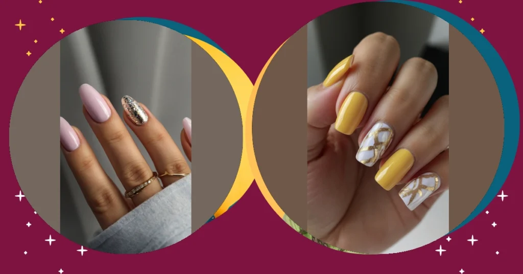 These nails are totally sunshine-ready! Imagine strolling down the beach, feeling the warm sand between your toes, and sporting these bright yellow and golden accents. It’s like a mini vacation for your fingertips! They’re so easy and chic, perfect for showing off your style without spending hours at the salon. Plus, yellow is such a happy color – it’s practically guaranteed to brighten your day. Who needs a filter when you’ve got nails this cheerful?