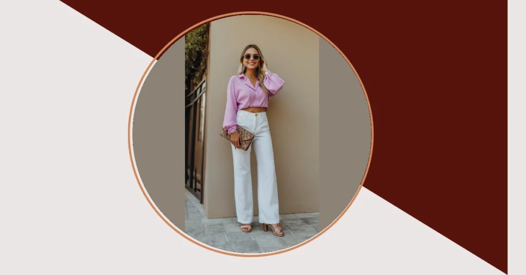 This outfit is like the summer version of a business meeting…but way more chill and fun. Seriously, who needs a stuffy suit when you can rock a flowy pink shirt with white jeans? It’s like saying, “I’m here to get stuff done, but I also brought the sunshine.” Pair it with some cute sandals and a clutch that looks like it escaped from a safari adventure, and you’re ready for anything from a beach date to a casual lunch with friends.